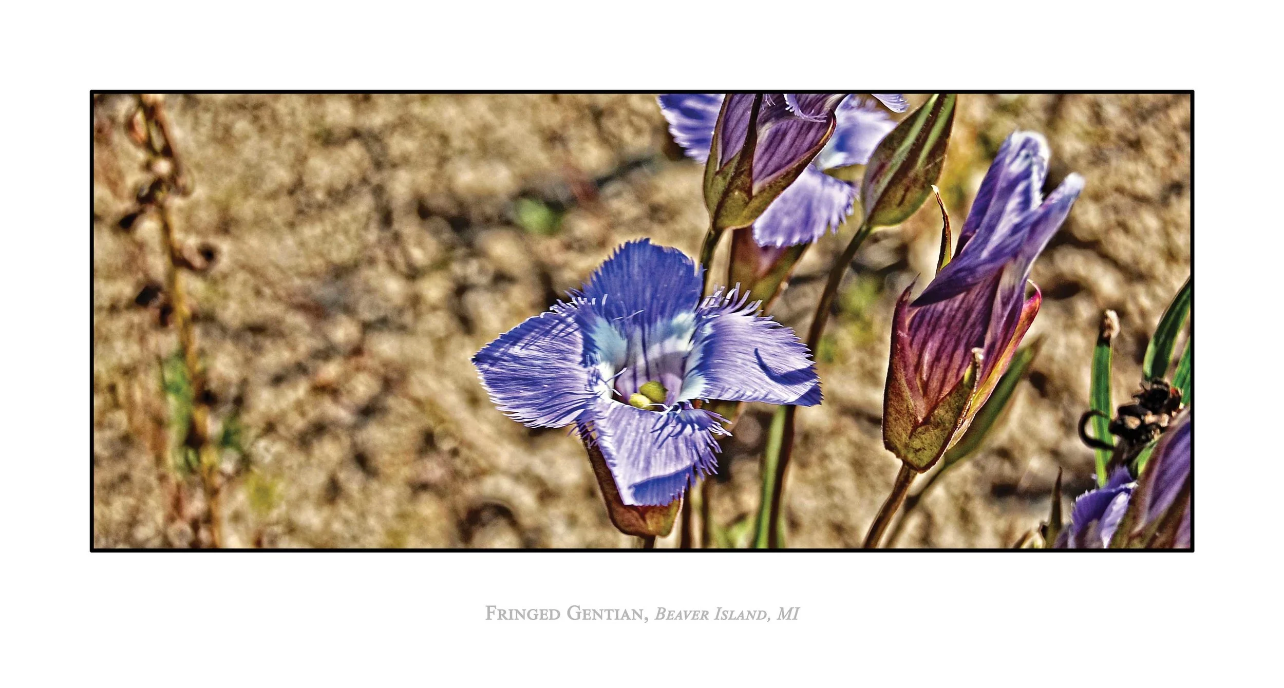 Fringed Gentian prefers fens, sandy, gravelly, rocky and marly shores, wet meadows, often make magnificent purple-blue display when in bloom in inter-dunal hollows and calcareous flats along the northern shores of Lake Michigan and Huron.